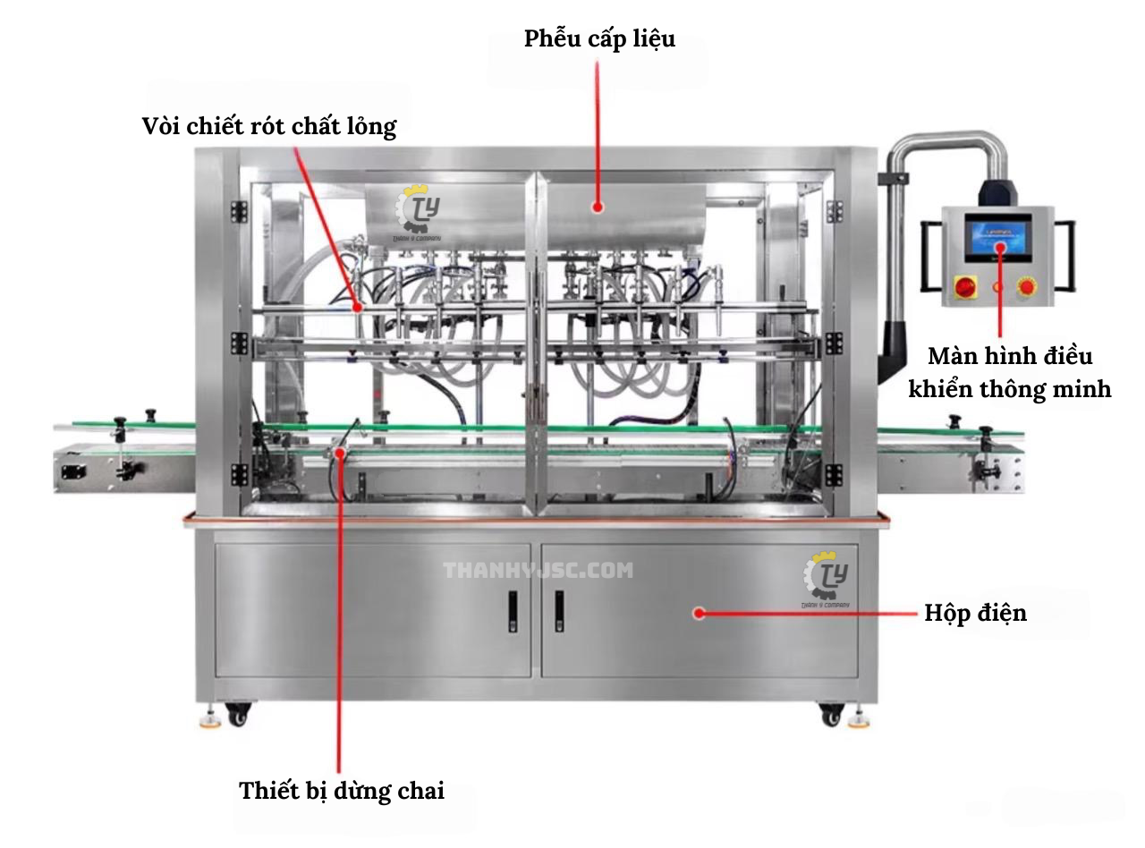Dây chuyền đóng gói và dán nhãn chai dung dịch lỏng tự động là giải pháp tối ưu trong ngành sản xuất và đóng gói các sản phẩm dạng lỏng như nước giải khát, dầu ăn, hóa chất, mỹ phẩm, và dược phẩm. Hệ thống này được thiết kế nhằm nâng cao hiệu suất sản xuất, giảm thiểu lao động thủ công, đảm bảo tính chính xác và đồng nhất trong từng sản phẩm.