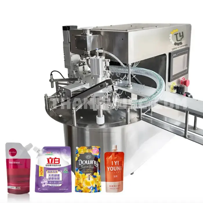 Máy chiết rót và vặn nắp túi Doypack được thiết kế chuyên biệt để đáp ứng nhu cầu đóng gói hiện đại trong ngành hóa mỹ phẩm và thực phẩm. Đây là thiết bị tự động hiệu quả cao, được ứng dụng rộng rãi trong chiết rót và đóng gói sản phẩm dạng túi có vòi như nước giặt, dầu gội, nước xả vải, và các loại dung dịch lỏng khác.