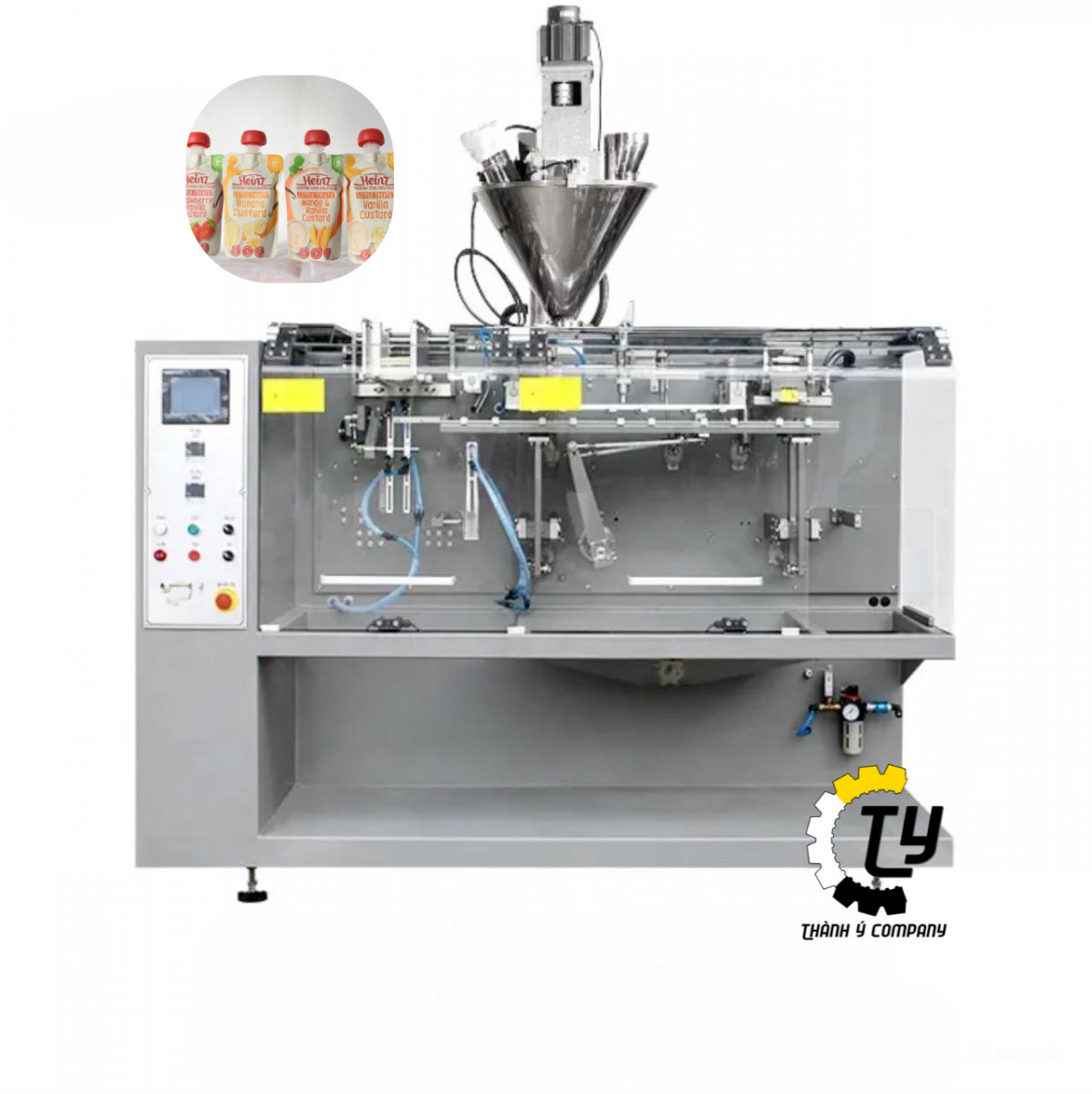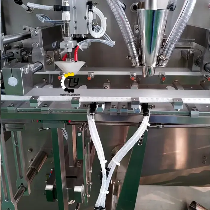 Máy chiết rót và đóng gói sữa nước vào túi đứng tự động là thiết bị được thiết kế để tự động chiết rót và đóng gói sữa nước hoặc các sản phẩm lỏng khác vào túi đứng (túi Doypack). Máy này giúp tăng hiệu quả sản xuất, giảm thiểu sự can thiệp của con người và đảm bảo chất lượng sản phẩm đồng đều.