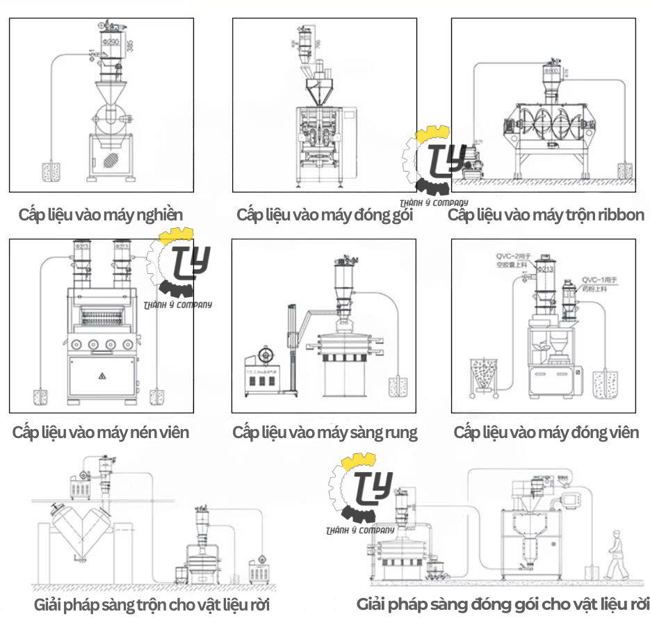 - Ngành thực phẩm: Cấp liệu cho các nguyên liệu chế biến thực phẩm như bột mì, gia vị, hạt giống, các thành phần khô khác.