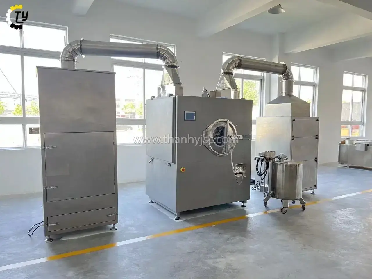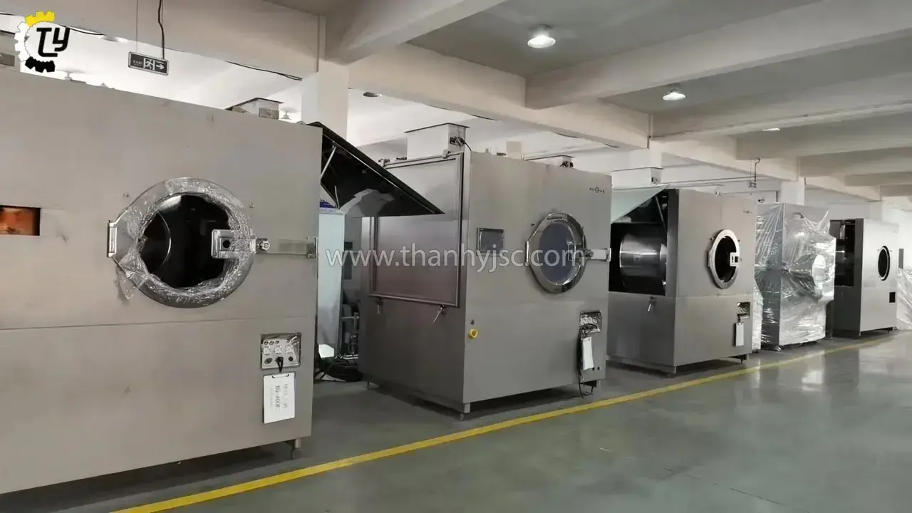 Hiệu Quả Cao và Tiết Kiệm Năng Lượng: Máy sử dụng hệ thống phun sơn hiện đại nhập khẩu từ Nhật Bản, đảm bảo lớp phim bao phủ đều, mịn màng trên bề mặt viên nén. Ngoài ra, hệ thống sấy khô bằng không khí nóng được lọc qua ba cấp độ (thô, trung, và cao cấp) giúp đảm bảo môi trường sản xuất sạch sẽ, không bị ô nhiễm.