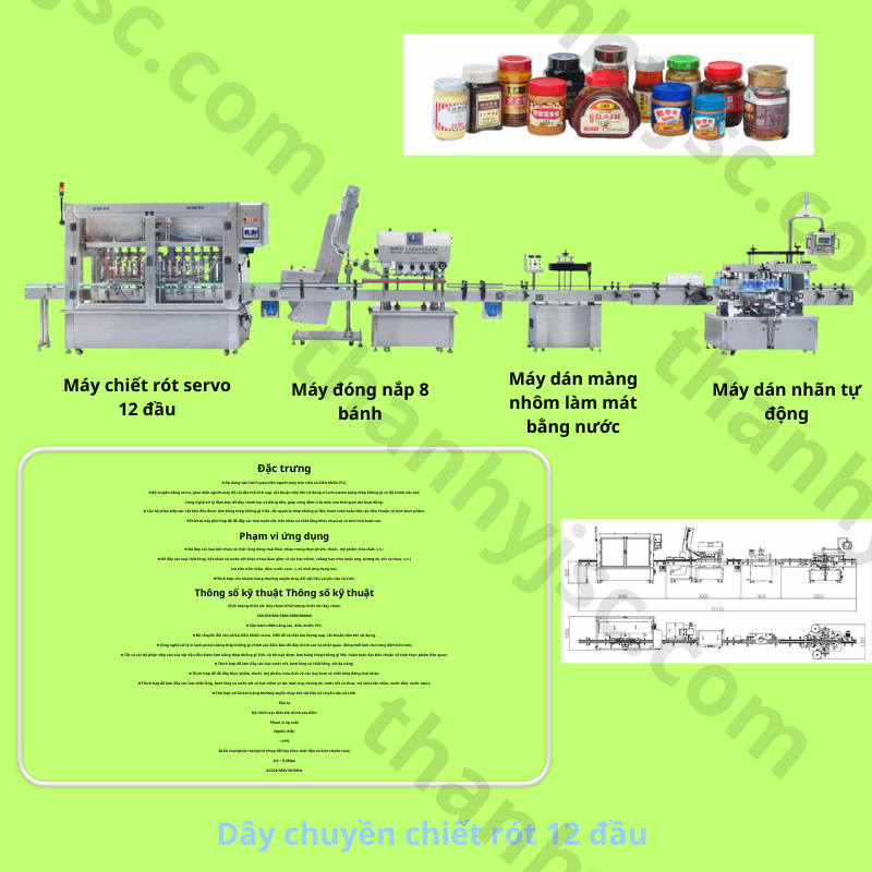 - Ngành Thực Phẩm, Dược Phẩm, Mỹ Phẩm, Hóa Chất: Máy chiết rót này lý tưởng cho việc đóng chai các loại chất lỏng và bột nhão trong các ngành thực phẩm, dược phẩm, mỹ phẩm và hóa chất.