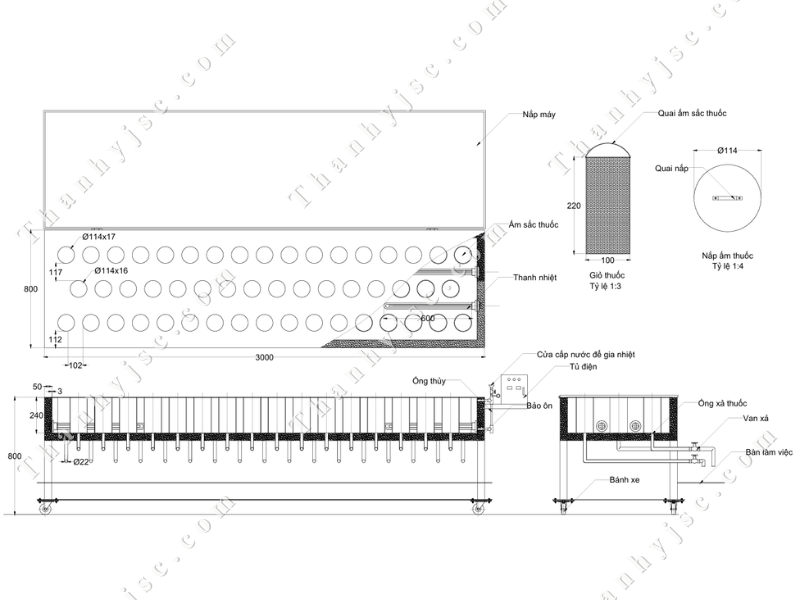 Máy sắc thuốc hoạt động dựa trên nguyên lý truyền nhiệt bằng dầu, trong đó: