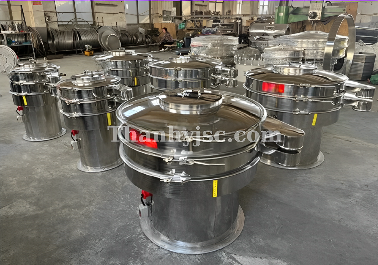 Ngành thực phẩm: Máy sàng rung TY-SR1200 được sử dụng để phân loại các nguyên liệu như bột, đường, gia vị, ngũ cốc, và hạt. Đảm bảo nguyên liệu đạt kích thước đồng đều và loại bỏ tạp chất, đáp ứng yêu cầu vệ sinh an toàn thực phẩm.