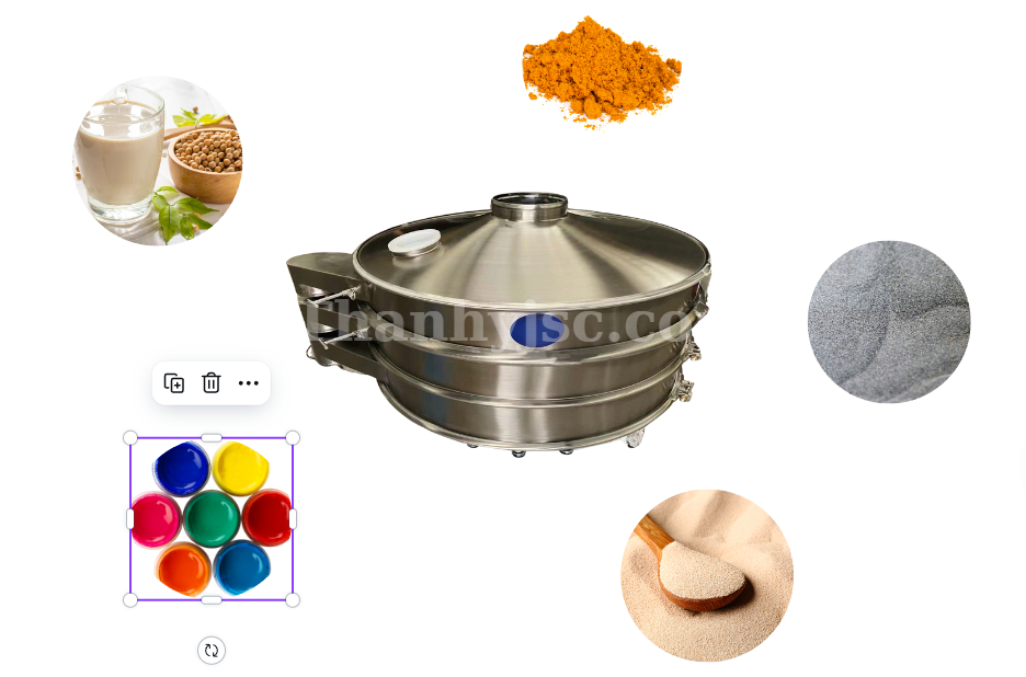 Ngành thực phẩm: Máy được sử dụng để sàng lọc và phân loại các nguyên liệu như bột, đường, hạt ngũ cốc, gia vị... giúp đảm bảo kích thước đồng đều và loại bỏ tạp chất, nâng cao chất lượng sản phẩm.