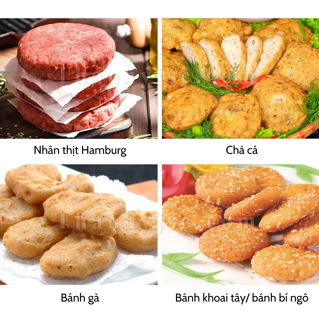 Máy tạo hình nhân thịt tự động có thể tự động hoàn thiện các quy trình như nạp nguyên liệu, tạo hình, ấn dẹp, ra sản phẩm và các bước khác. Máy có thể sản xuất các sản phẩm phổ biến trên thị trường như nhân hamburger, miếng gà McLehose, chả cá, chả hải sản, chả thịt, bánh khoai tây, bánh bí đỏ, v.v...