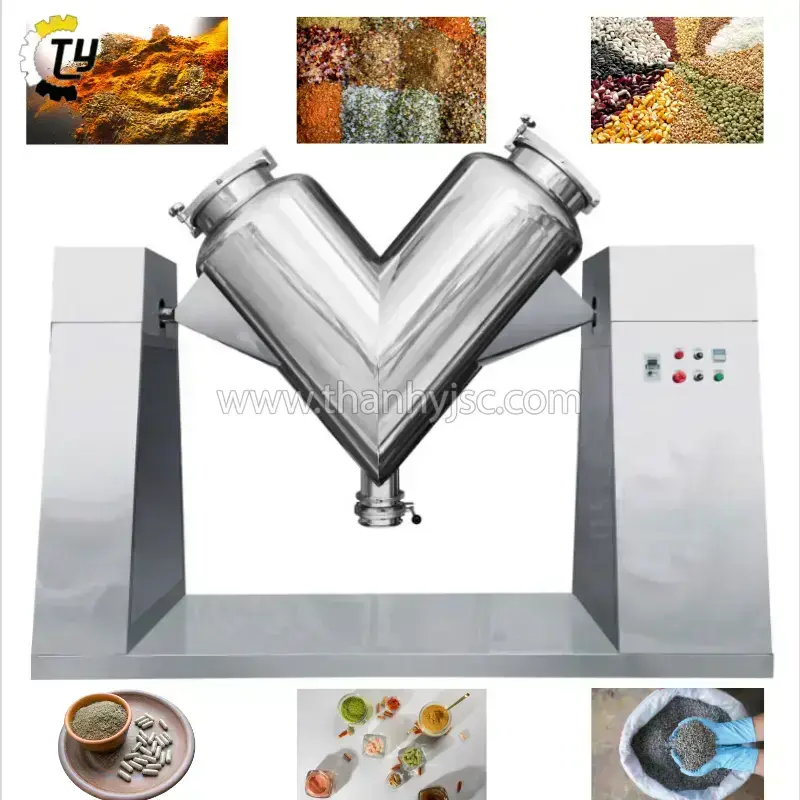 Máy trộn bột 300L chữ V - V300 - Trộn đều 300L bột chỉ trong thời gian ngắn, đảm bảo độ đồng đều cao. Thiết kế bền bỉ, vận hành ổn định, chất liệu inox cao cấp. Giải pháp hoàn hảo cho các cơ sở sản xuất quy mô lớn, cần trộn lượng bột lớn.