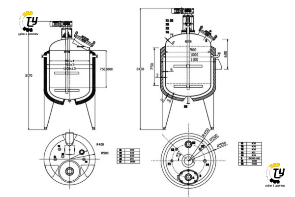 Trong sản xuất tank công nghiệp, thiết kế bản vẽ không chỉ bao gồm kích thước, hình dáng của bồn mà còn xác định: