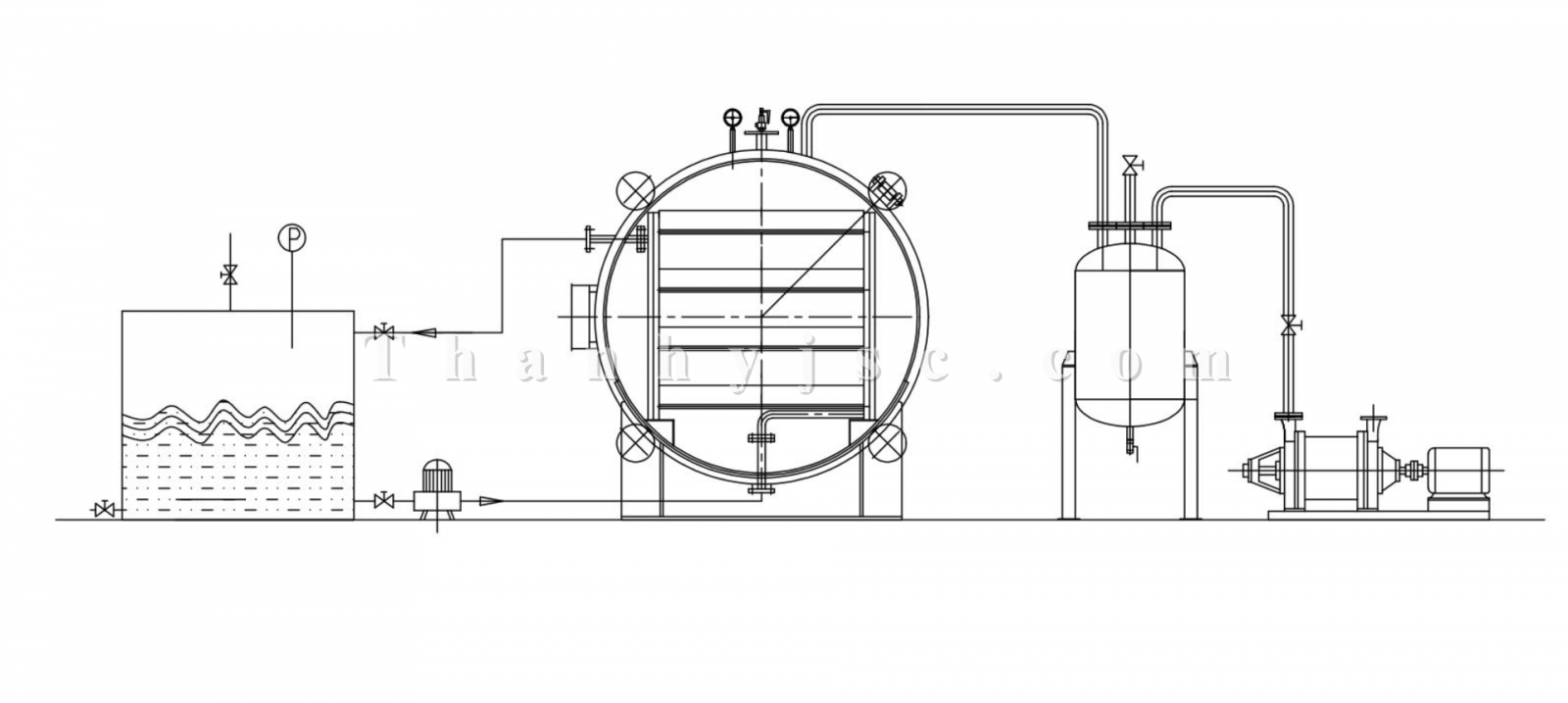 Quá trình sấy được điều khiển tự động bằng hệ thống điều khiển. Hệ thống này sẽ điều chỉnh nhiệt độ của nước nóng, mức độ chân không trong buồng sấy và thời gian sấy để đảm bảo sản phẩm đạt được độ khô mong muốn mà không bị hư hỏng. Các thông số như nhiệt độ, áp suất và thời gian sấy sẽ được cài đặt trước dựa trên đặc tính của từng loại sản phẩm.