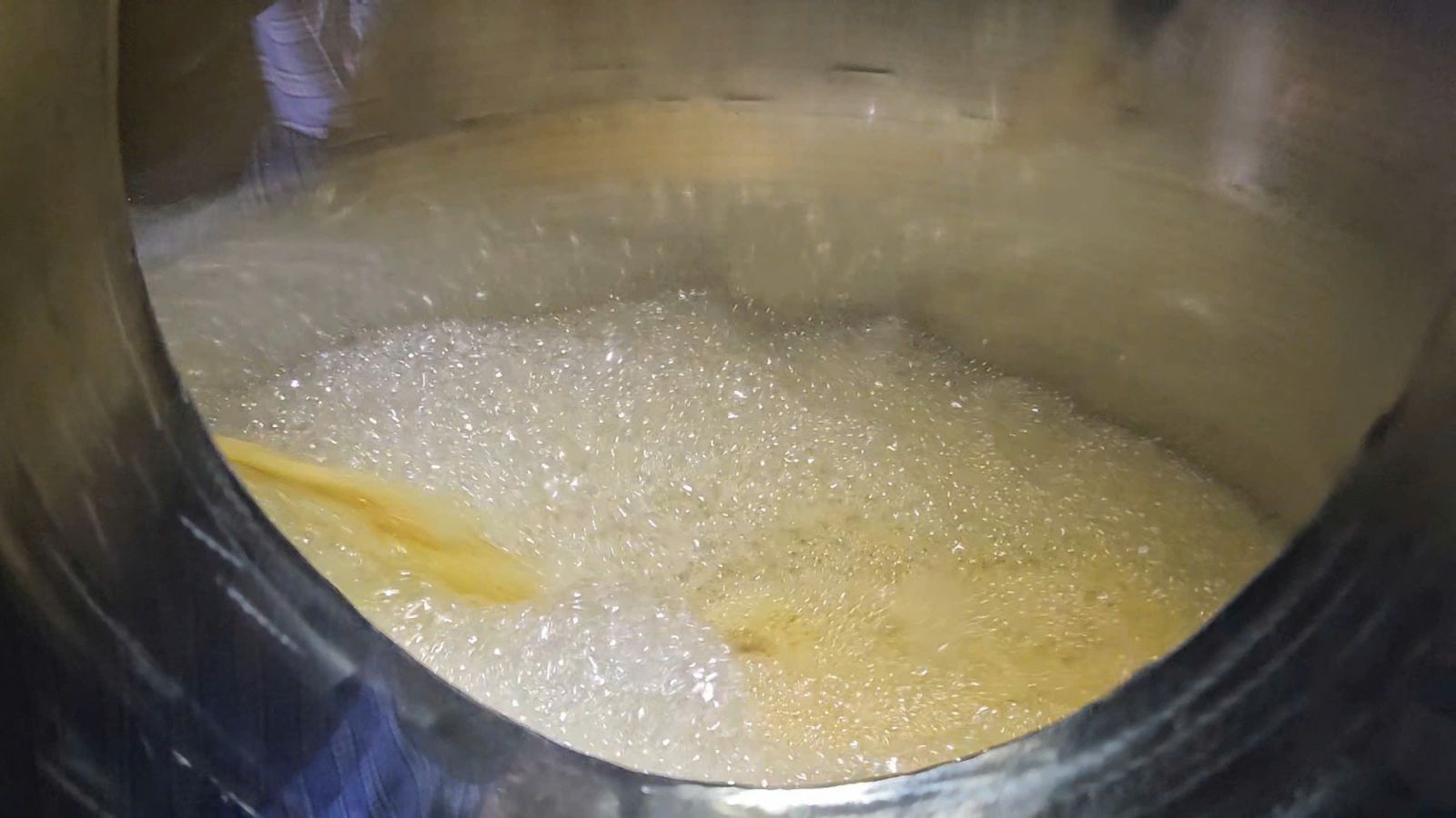 Cận cảnh dung dịch chiết xuất lá tre đang sôi trong nồi cô tuần hoàn