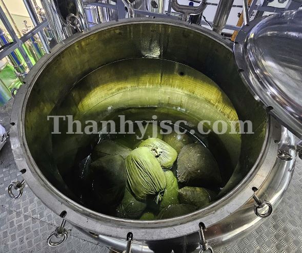 Nồi chiết xuất dung tích lớn, cửa xả đáy dùng piton khí nén mở tự động