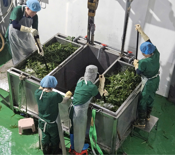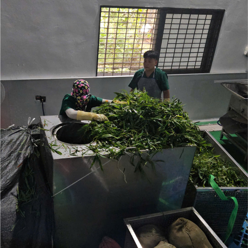 Lá tre sau khi thu hoạch được rửa sạch loại bỏ tạp chất và chuẩn bị cho công đoạn tiếp theo