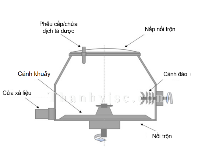 - Tạo hạt hiệu quả: Ngoài việc trộn, máy còn có chức năng tạo hạt (granulation) giúp tạo ra hạt đồng nhất, có kích thước và độ ẩm phù hợp cho quá trình sản xuất.