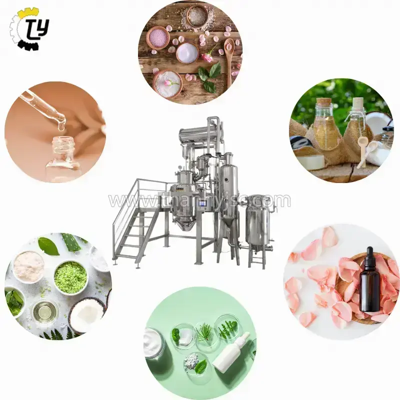 Tinh dầu từ các loại thảo mộc, hoa, và trái cây là thành phần không thể thiếu trong nhiều sản phẩm mỹ phẩm thiên nhiên như kem dưỡng, serum, và dầu gội. Dây chuyền chiết xuất giúp tách tinh dầu từ nguyên liệu thô với độ tinh khiết cao, giữ lại các đặc tính dưỡng chất và hương thơm tự nhiên của nguyên liệu.